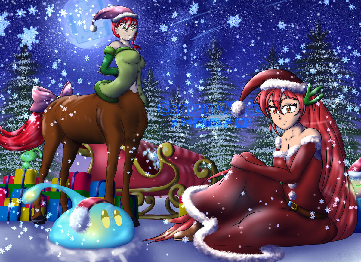 This ended up being a bit ambitious not going to lie since I wanted to do the Bob Ross style trees with a lovely starry background. I won’t lie, Kenna was more a late edition since she won the OC Ballot in 2022 (hence a rather simple design). But I loved I brought back my little Basalees (the slime creatures), Payton came out so great and the fluff shading is at it’s peak here. There’s something so magical about this scene and I love it so much.Character belongs to @CentaurWorks